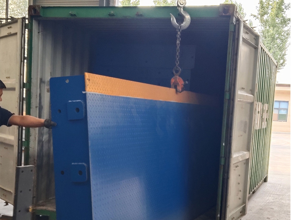 采購(gòu)背景: 新鄉(xiāng)迪科瑪機(jī)械有限公司由于出口肯尼亞訂單需求委托恒瑞稱重生產(chǎn)加工一臺(tái)寬3米,長(zhǎng)18米,定額100噸分體式數(shù)字汽車衡。此地磅采用安鋼Q235B材質(zhì)加厚中板,采用四節(jié)八塊分體式組合結(jié)構(gòu),便于出口貿(mào)易集裝箱運(yùn)輸。同時(shí)配備柯力出口型數(shù)字傳感器,柯力20008出口型英文數(shù)字儀表,此批分體秤已順利交貨裝車,完成交付。